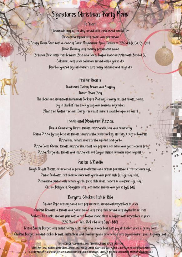 All of our Christmas Party Nights are inclusive of a 2 course meal with a great selection for everyone. Keep an eye out for the menu, landing soon !!!