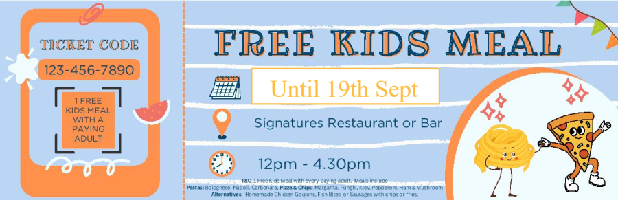 Download your FREE Voucher to claim a Kids Meal FREE this half term. Terms & Conditions apply, please see below...
